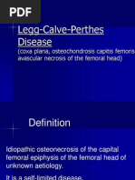 A doença de Legg-Calvé-Perthes foi descrita inicialmente em 1909 por Waldenström 10 como de etiologia tuberculosa. Legg-Calves-Perthes disease refers to idiopathic avascular necrosis of the femoral head that results from decreased blood supply to the hip. Avascular necrosis of the femoral head.