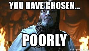 You Chose Poorly - Grail Knight. POORLY with the best meme generator and meme maker on the web download or share the HE CHOSE. Jul 19 2019 so you have chosen death memes lament risky decisions funny memes that get it and want you to too.