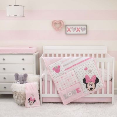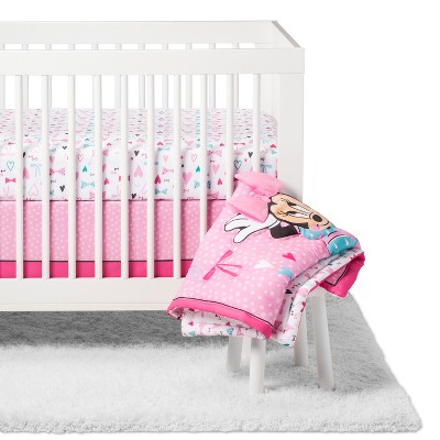 20 off Kids Toddler Baby License Apparel. The soft color palette and timeless design is sure to match most nursery decor. Disney Baby Minnie mouse pretty in pink 3 piece crib bedding set.