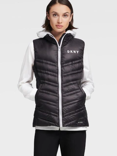 All black womens size M DKNY puffer styled lightweight vest. Womens Knit Sweater Top. DKNY Black Nylon Vest Small.