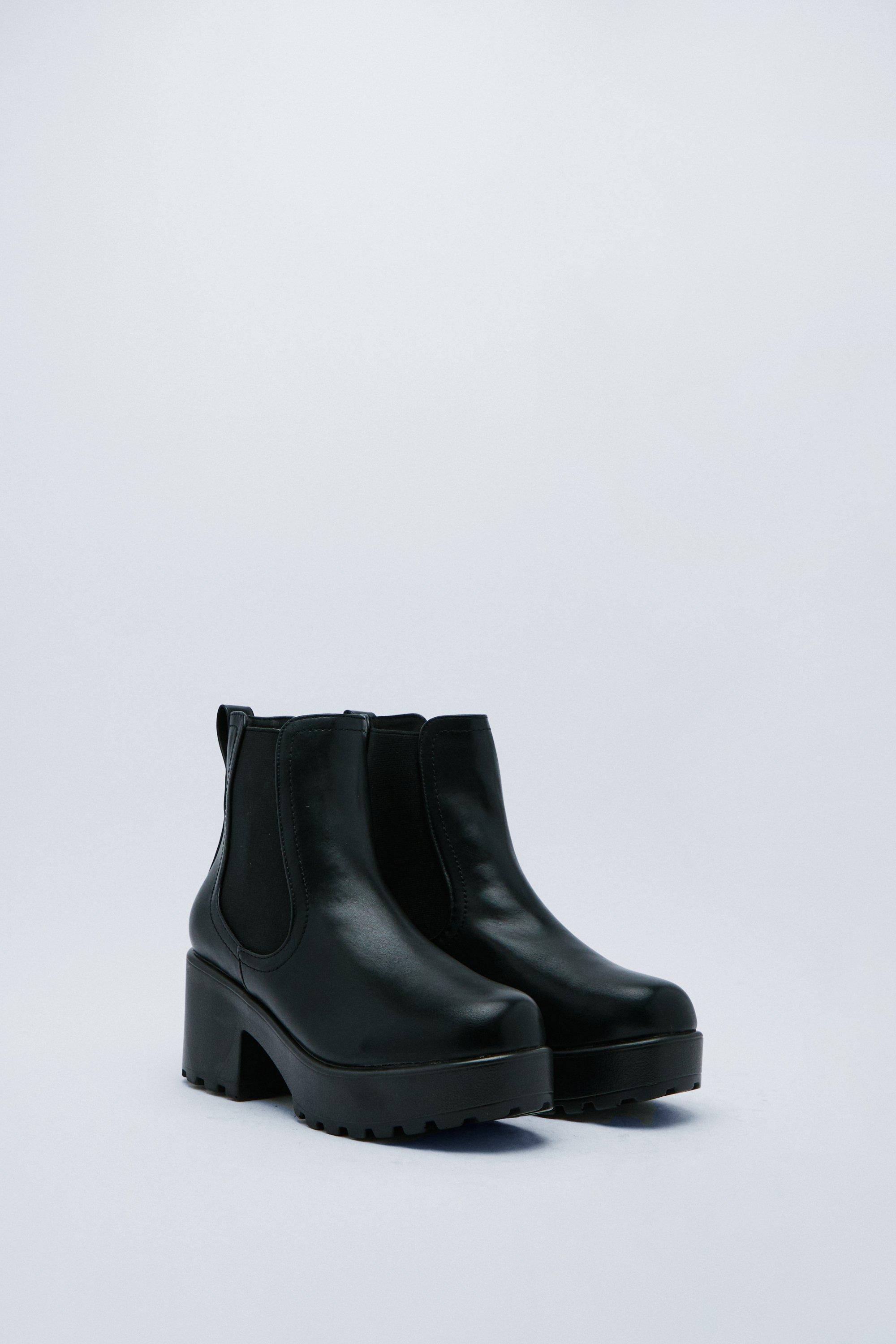 If you are between sizes we recommend going to the next size up. ROMWE Altspo Buckle Decor Chunky Combat Boots. These Chelsea boots come in faux leather and feature a high ankle silhouette chunky sole with cleated design round toe elongated elasticated goring at sides and heel pull tab.